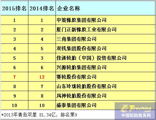 中策橡膠排行第一,盛泰集團排行第十,而賽輪股份第一次進入前十;雙星淡出。